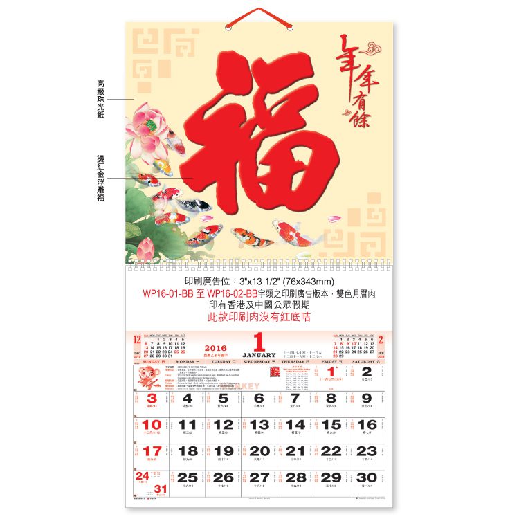 掛墻月曆 quantity