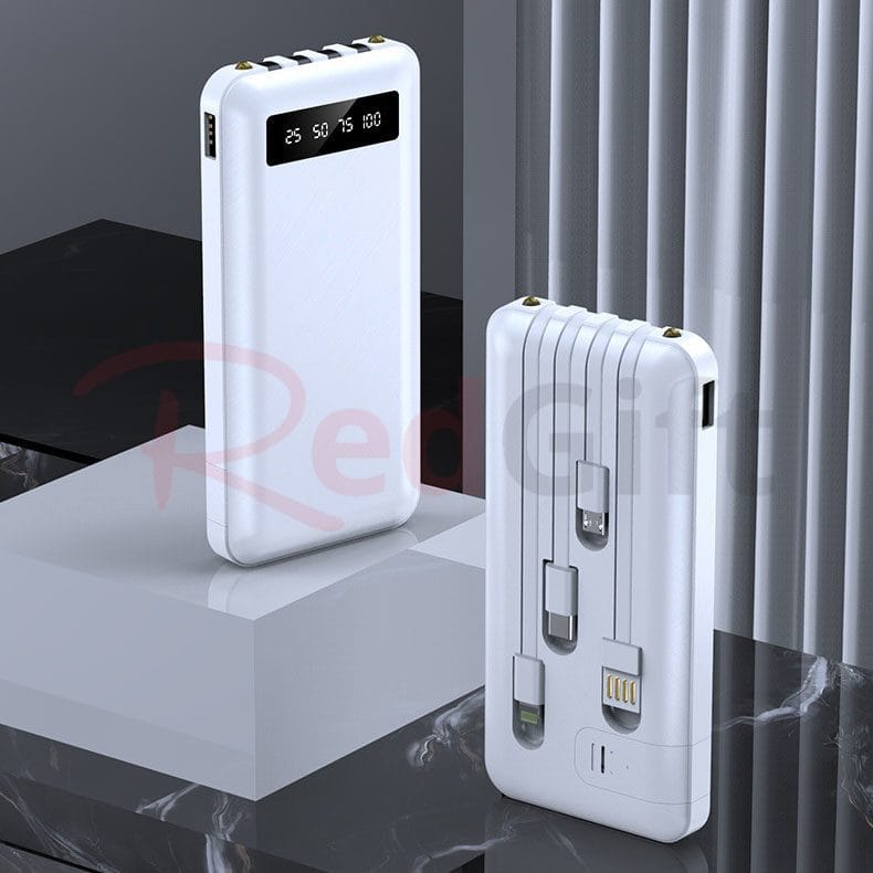 移動電源:自帶多功能充電線,出門不需要轉接頭,並能同時連接四台電子設備。