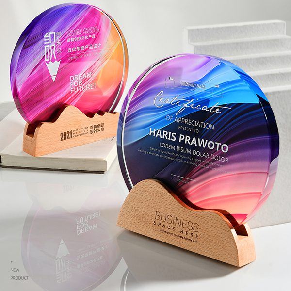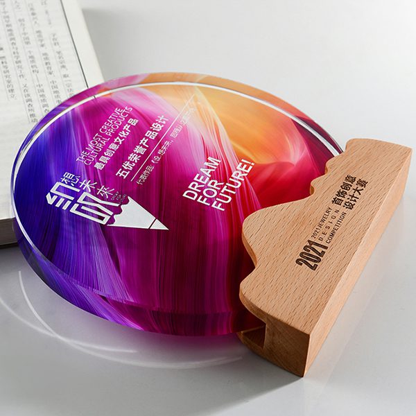 櫸木底座搭配高透水晶,創意設計,讓獎盃更具藝術感。