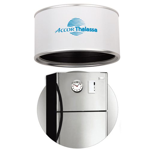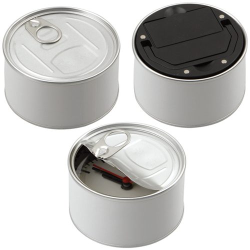 罐頭創意造型,進口機芯,背面帶支架可用於桌面擺放,也可貼於冰箱等金屬表面物品上使用,時間面設計簡約,刻度清晰,使用時需配1節5號電池。