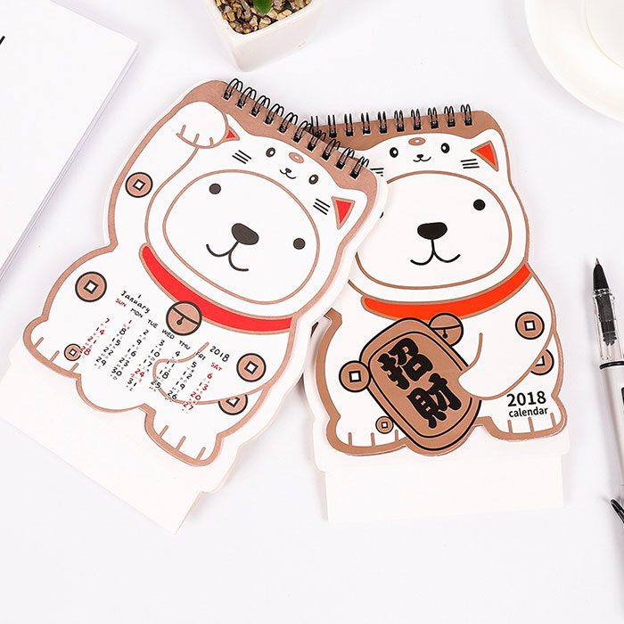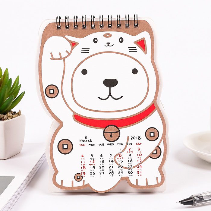 一隻會扮貓的狗,這就是我們的招財狗檯曆。將這麼可愛的招財狗檯曆放在桌子上,不但可以讓你清楚每一天的行程,還能讓你心情好,或者增加運氣噢!快來選購這麼可愛的檯曆吧!