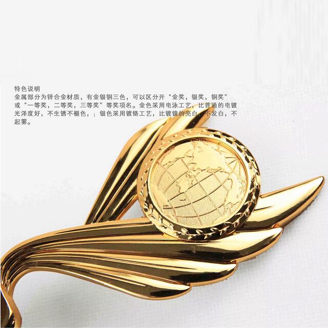 使用電鍍技術在客製化獎盃表層電鍍上不同種類金屬呈現鍍上之金屬質感,或上蠟使金屬獎盃表面光澤呈現更佳。
